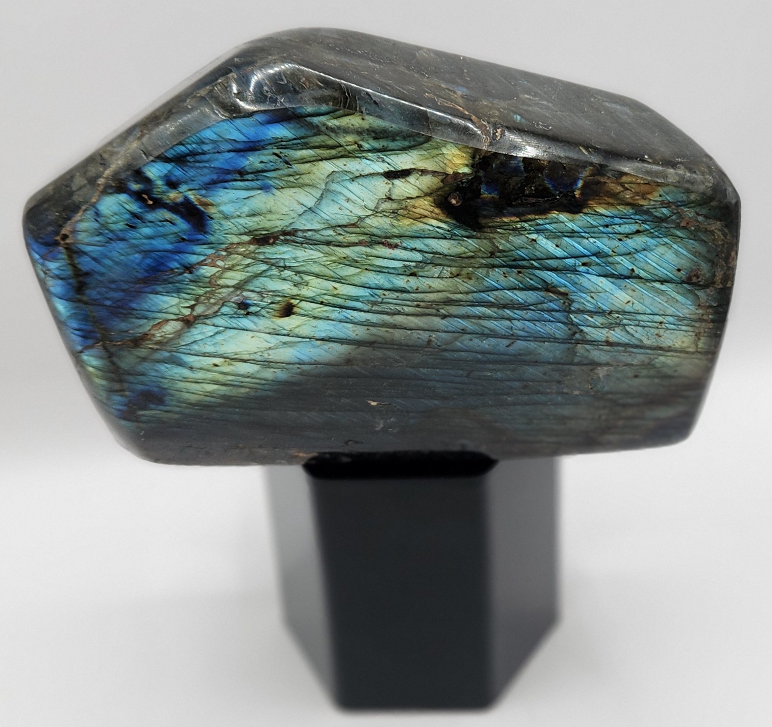 4 ¼” tall x 6 ½” across. 4lbs 9oz